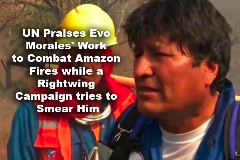 UN Praises Bolivia’s Efforts to Combat Amazon Fires UN General Assembly President María Fernanda Espinosa praised Bolivia’s efforts in combating the Amazon fires that have affected Brazil, Bolivia, Peru and Paraguay. The comments come amid criticism leveled at Bolsonaro for inaction, while Bolivia has been praised for mobilizing large efforts to help extinguish fires in their country.