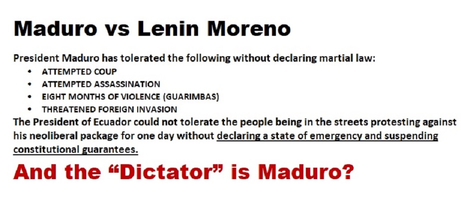 A Silenced Unrest in Ecuador? The Media’s Culpability There is virtually no coverage of the massive resistance to Moreno in Ecuador in the corporate media in the US. We know all too well how the coverage would be if this was say Venezuela or Bolivia.