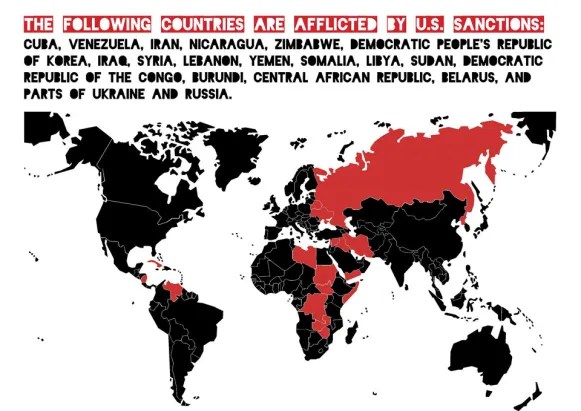 US sanctions affect a third of humanity with more than 8,000 measures impacting 39 countries. Economic sanctions can amount to blockades, as against Cuba, Venezuela, North Korea, and Iran.