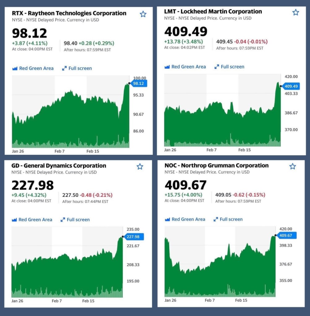 Corporate Military contractor stocks hit a 52-week high right after Russian invasion of Ukraine: