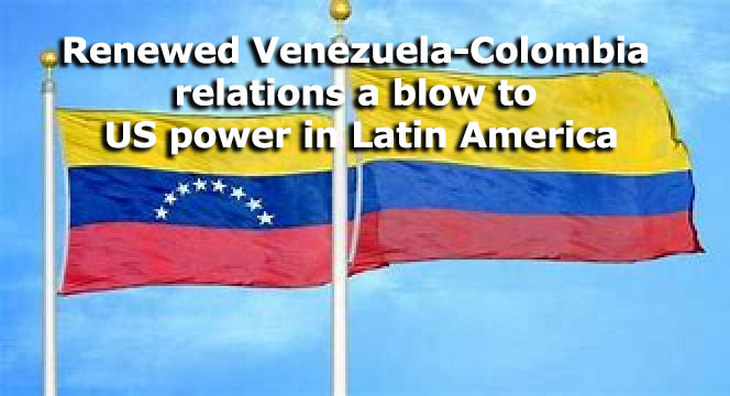 TeleSur: Restored Venezuela-Colombia Ties a Blow to US Venezuela and Colombia’s restoration of diplomatic ties clearly illustrates the United States’ waning influence in Latin America. The restoration of relations between the two countries is a “strong and convincing sign that the foreign policy of the United States has experienced an undeniable setback in Latin America and the Caribbean,” Fernando Rivero pointed out. President Maduro received the credentials of Colombia’s Ambassador to Venezuela Armando Benedetti, marking the full restoration of diplomatic relations. Washington’s interests in the region have recently suffered innumerable setbacks, said Rivero, highlighting the notorious public failure of the last Summit of the Americas.