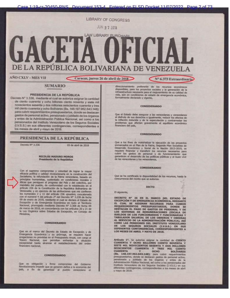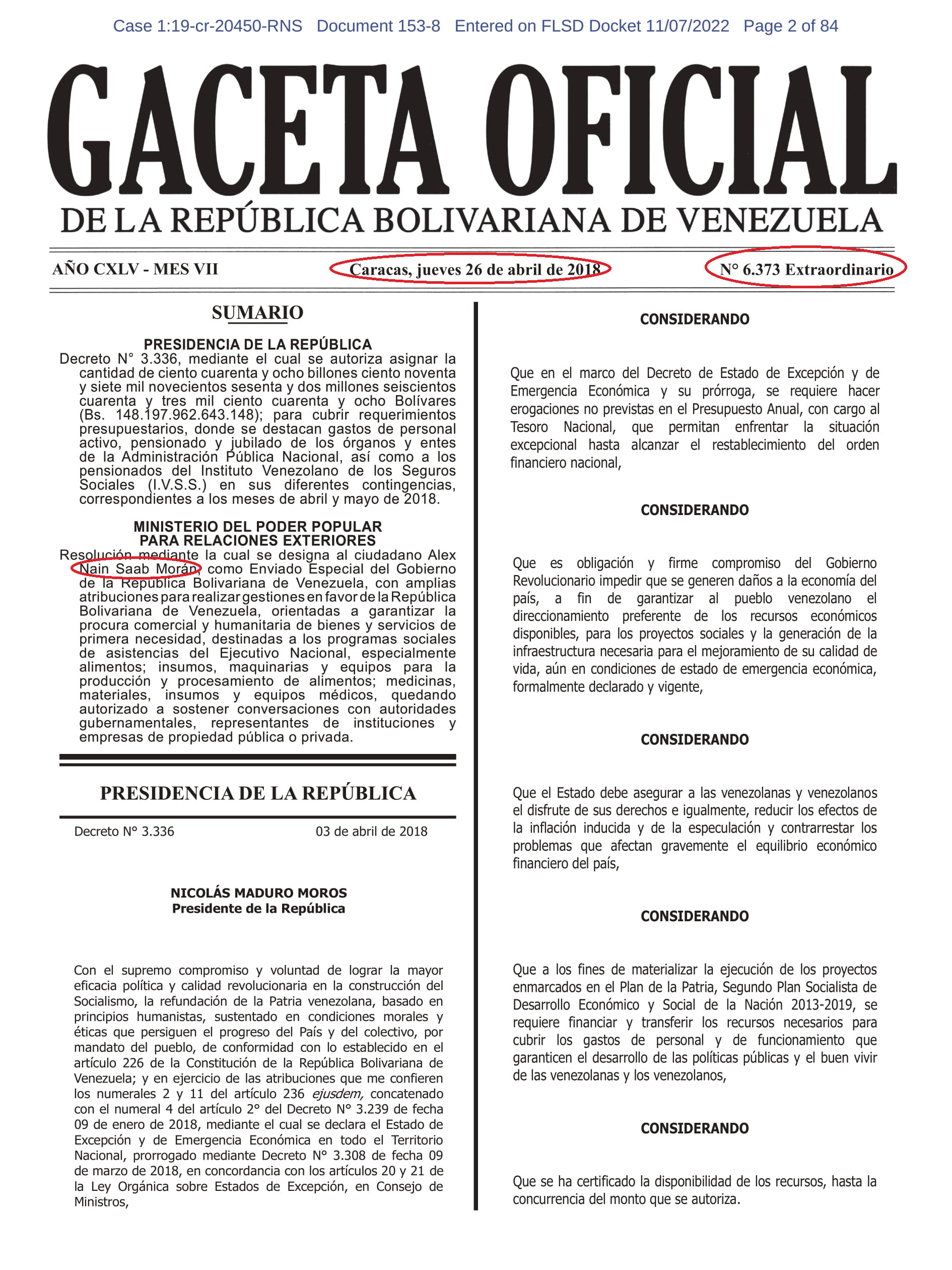 In a publication on Twitter, disseminated by the Associated Press journalist, Joshua Goodman, an electronic version of the Official Gazette N°6,373 allegedly stored in the Library of Congress of the U.S., is compared with one printed later, in which, according to him, the designation of Saab as Special Envoy does not appear.