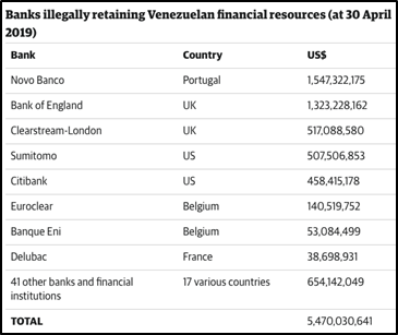 Thus, during 2019, Portugal’s Novo Banco S.A. for example, did on three occasions prevent the Government of Venezuela from paying 4.7 million euros to the Italian Foundation for Bone Marrow Transplantation to provide treatment to 26 Venezuelan patients, including children and adolescents affected by severe health problems. In May 2019 alone five of these children died waiting to undergo the transplant. Currently, the Novo Banco has blocked or frozen US$1.5 billion that belong to the people of Venezuela.[17]