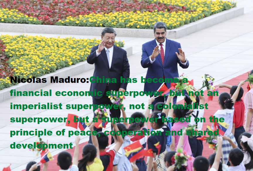 XinhuaNet: Xi and Maduro announce elevation of China-Venezuela ties “China has always viewed its relations with Venezuela from a strategic and long-term perspective, and firmly supports Venezuela’s efforts to safeguard national sovereignty, national dignity and social stability, as well as Venezuela’s just cause of opposing external interference,” Xi told Maduro. Maduro said Venezuela and China enjoy profound friendship and fruitful cooperation, making bilateral relations a model for relations among countries of the Global South. He added that China has become a great country committed to peace, development, and well-being of humanity and a vital engine for promoting a new multi-polar world. The Venezuelan people thank the Chinese government and people for their valuable support and assistance when Venezuela was suffering from illegal unilateral sanctions and the COVID-19 pandemic. Sun Yanfeng, Deputy Director of the Institute of Latin American Studies, China Institutes of Contemporary International Relations, noted that Venezuela is the first Latin American country that China established an all-weather strategic partnership with.