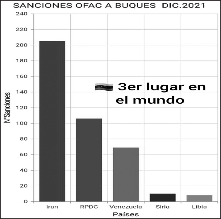 As of December 2021, Venezuela ranked fifth in the world in company sanctions by the U.S. Office of Foreign Assets Control (OFAC), as well as third in ship sanctions, fifth in individual sanctions, and second in aircraft sanctions.